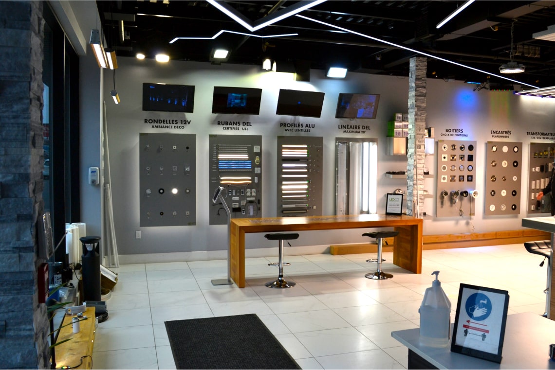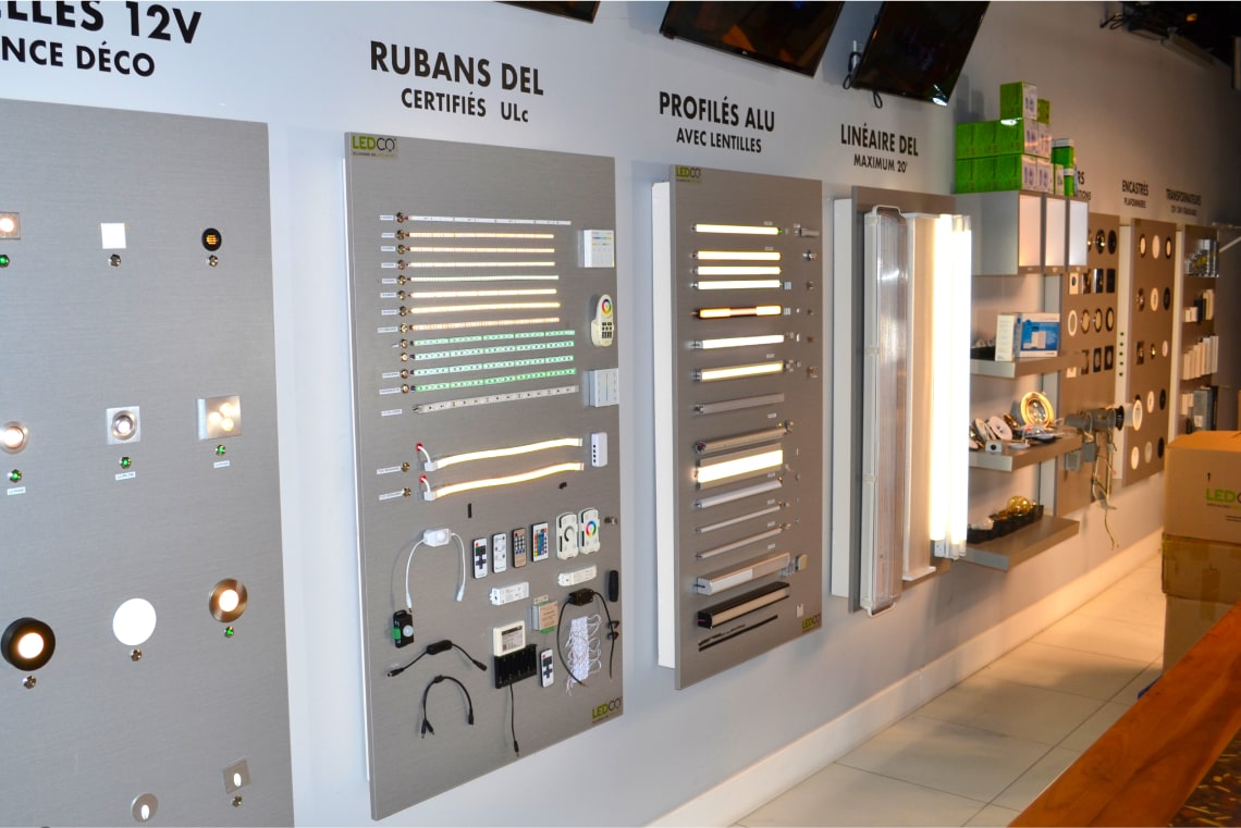 Discover our LEDCO showroom, a must-see destination on Montreal's South Shore for anyone wishing to experience our full range of LED lighting products up close. Discover our innovative LED products, all certified for the Canada & USA market (cULus, cSA, cETLus, DLC, and Energy Star), reflecting our commitment to quality and sustainability. You'll discover a wide range of LED lighting products, from the smallest bulb to street lamps and custom fixtures with our aluminum profiles and LED ribbons.